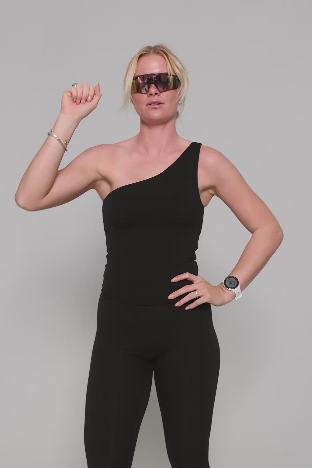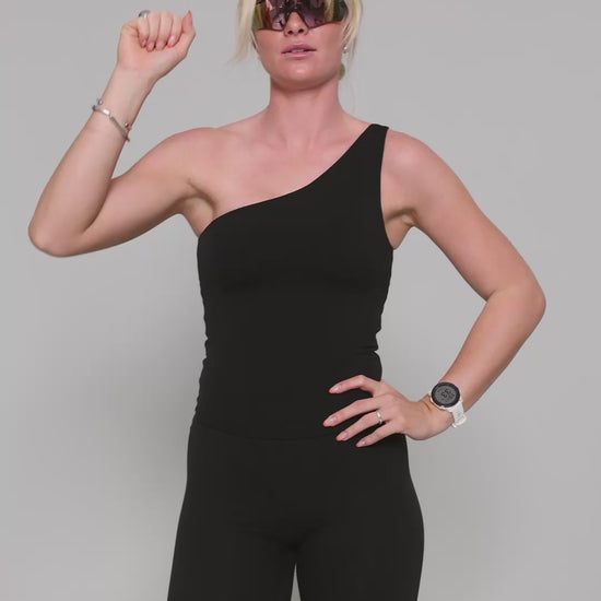 The one-shoulder silhouette brings a bold, feminine edge with a secure, body-hugging fit. Designed for freedom of movement and everyday versatility.